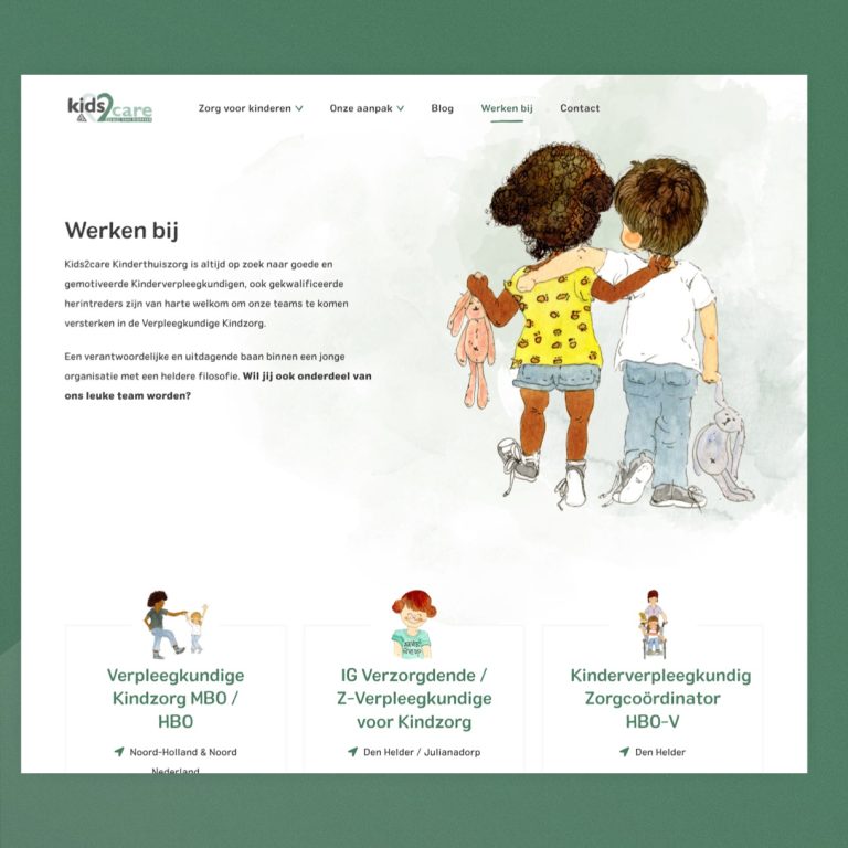 Smeders heeft voor Kids2care een nieuwe website ontwikkeld, met een frisse uitstraling die hun warme, persoonlijke zorgbenadering weerspiegelt. Kids2care, bekend om hun maatwerk in zorg waarbij kinderen centraal staan, wordt nu online vertegenwoordigd door zachte kleuren en sketchy details. Deze elementen versterken visueel het concept van ‘kinderen die gewoon kind kunnen zijn’.